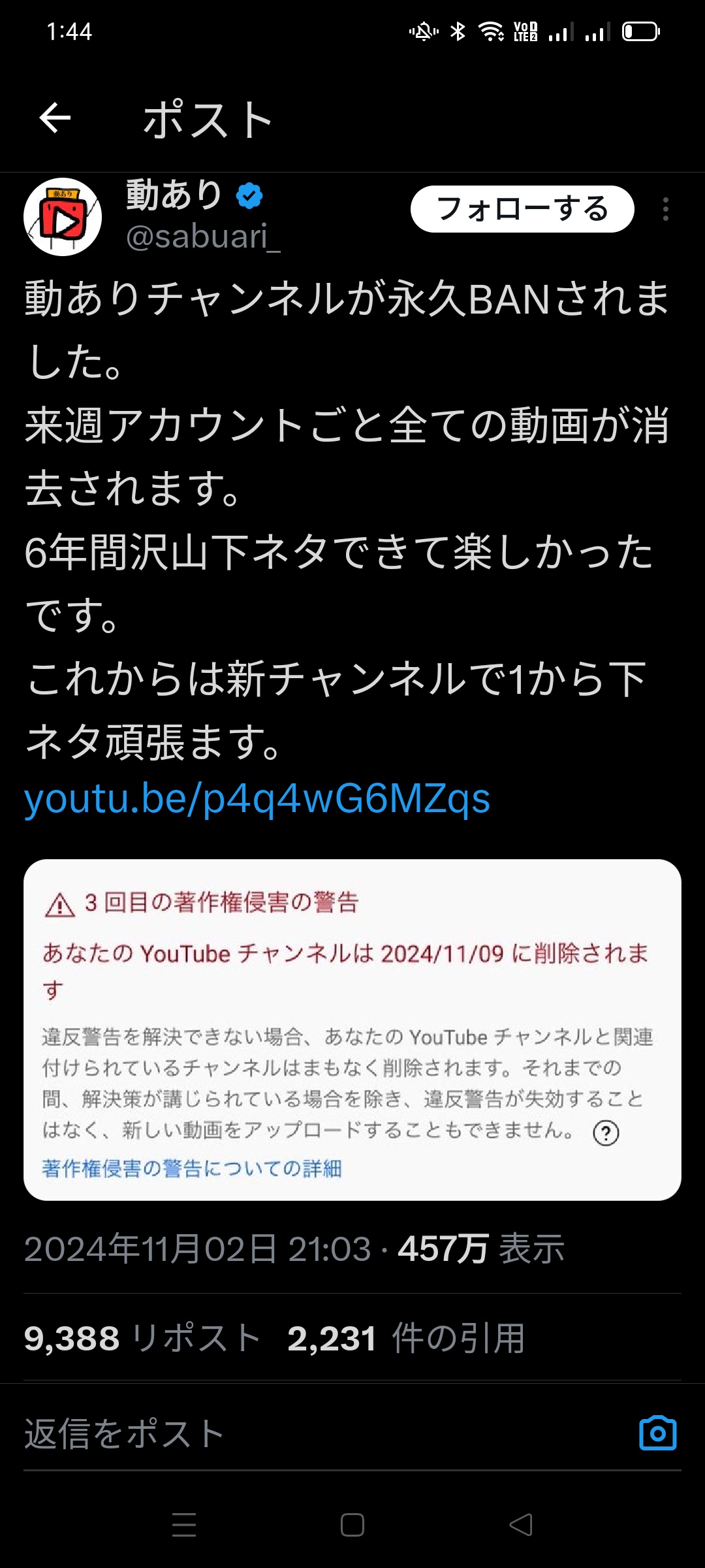 永久BANになったら新しいチャンネル作れねえんじゃねえの?