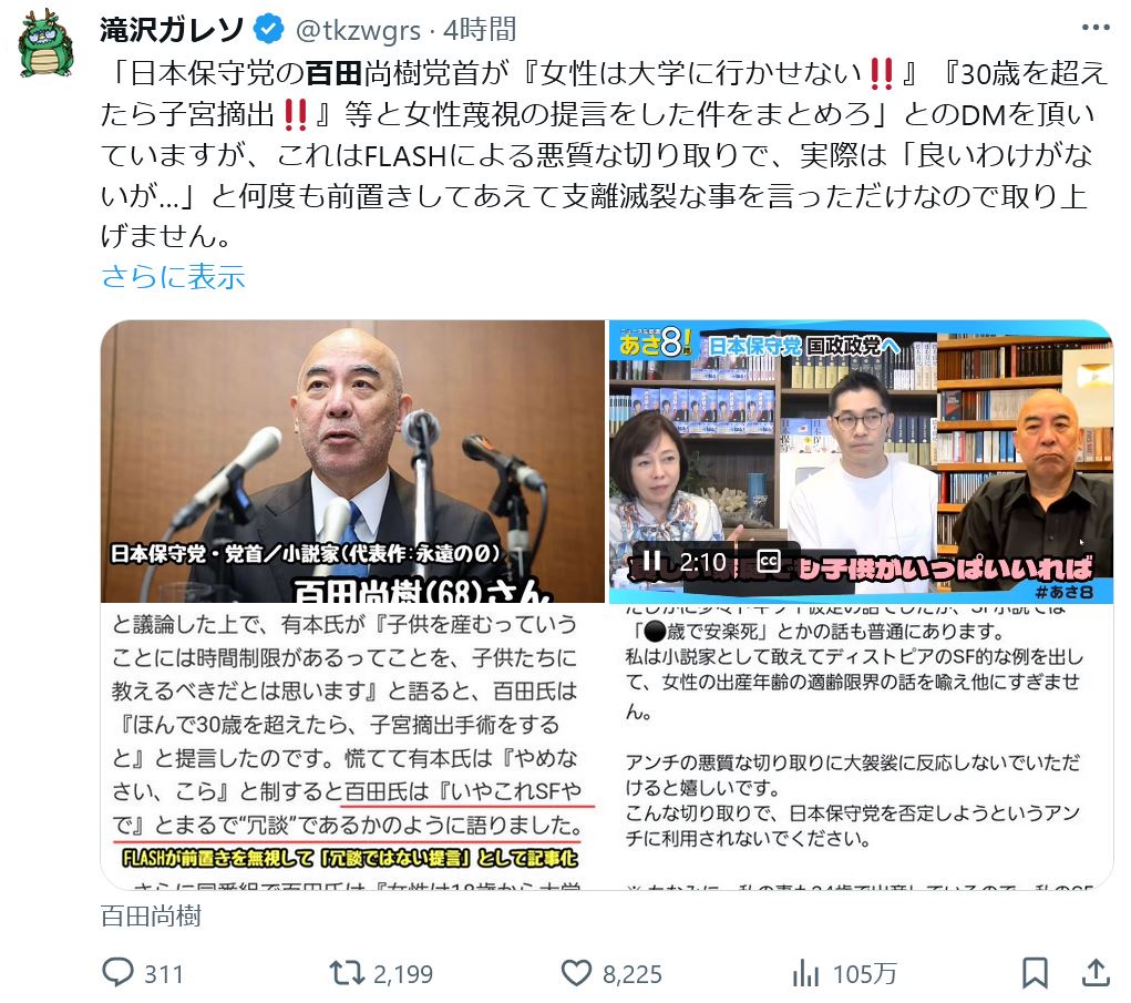 百田と有本はもう党実務から降りて名誉職にでも就いたほうが党のため