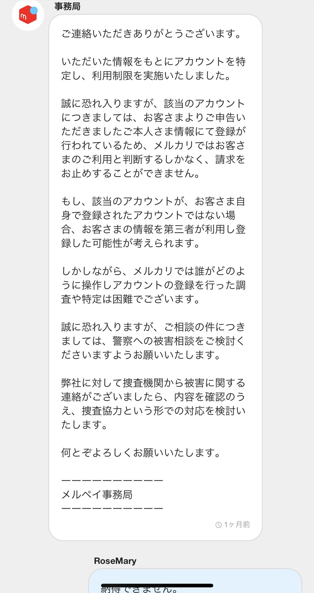 メルカリからしたらまずは被害届を出してくれとしか言えんわな