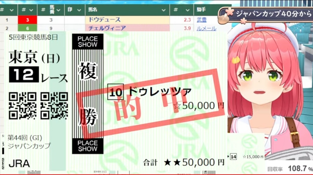これで的中おめでとうスパチャはいくら投げられたの?