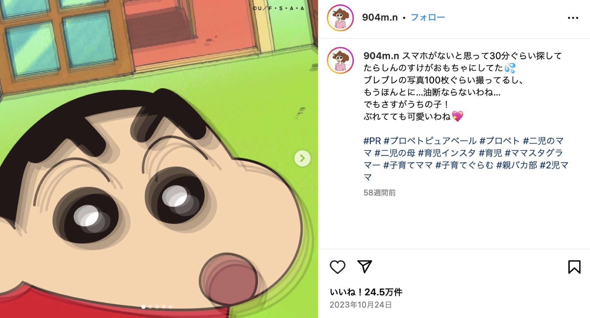 みさえの公式インスタで案件をしだしたのかと思ったら、そもそもがその商品の宣伝企画としてみさえのインスタが始まったってことか