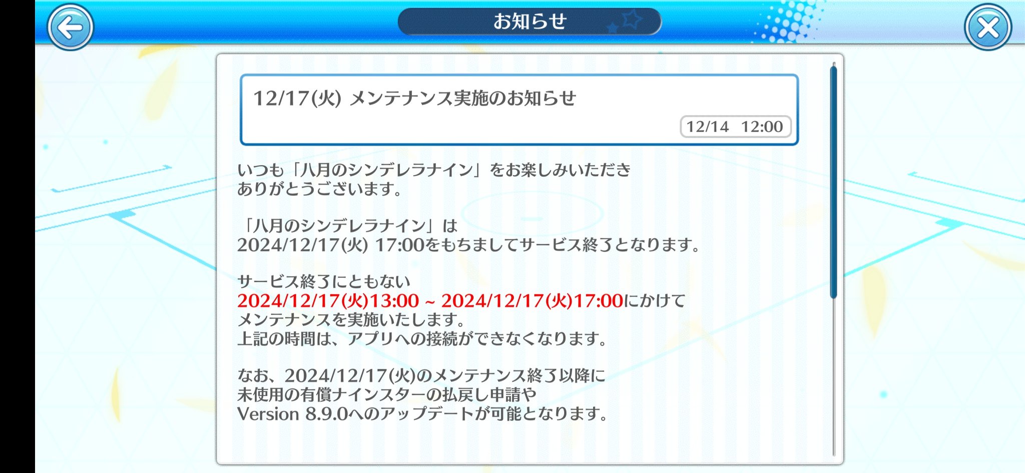 ハチナイはサービス期間89ヶ月で終了やっけ
