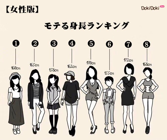 これモテるランキングじゃなくて男と見てもいい身長ランキングだよな