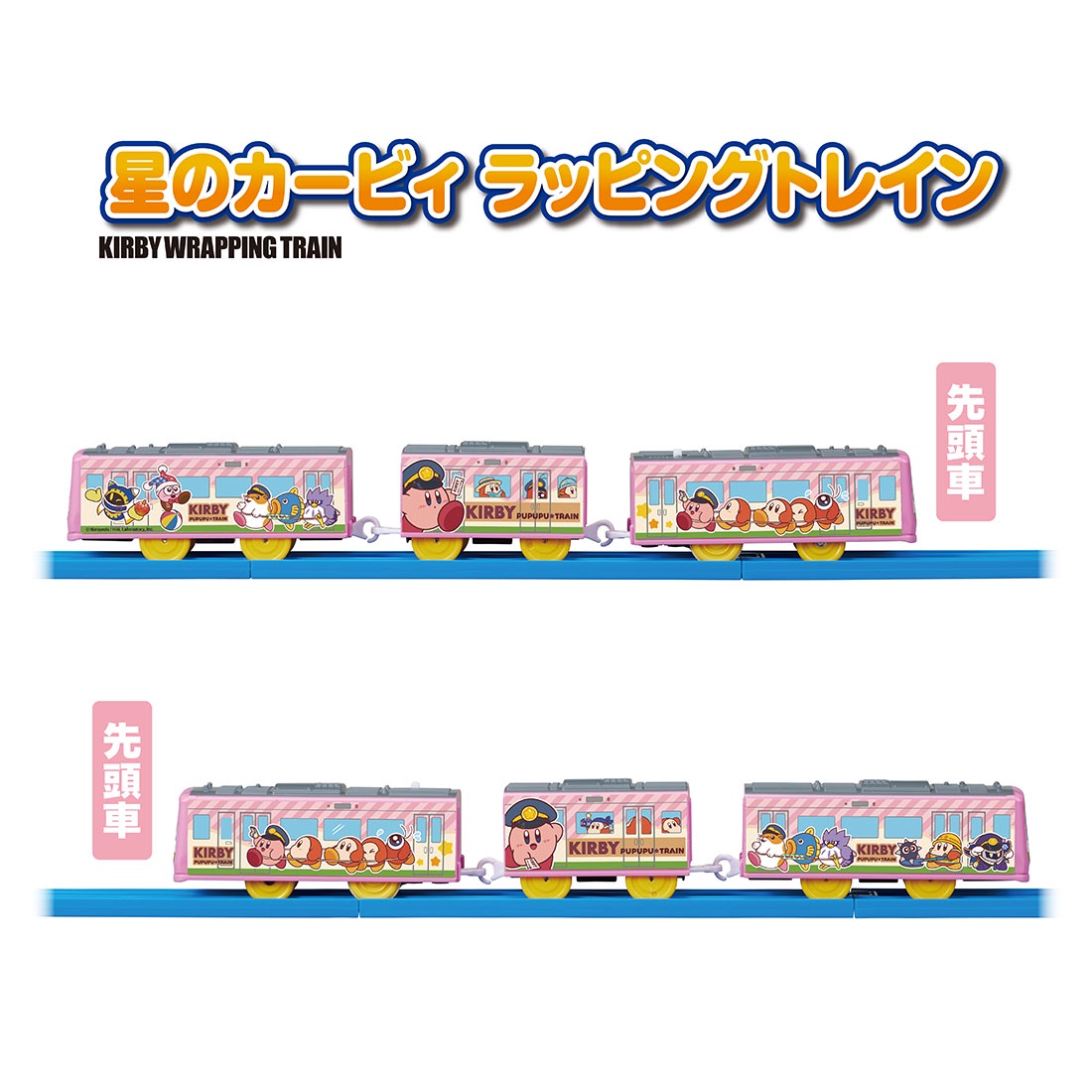 本商品の見どころは,車掌に扮したカービィや“でんしゃごっこ”をするワドルディたちが車両全体に描かれている点だ。