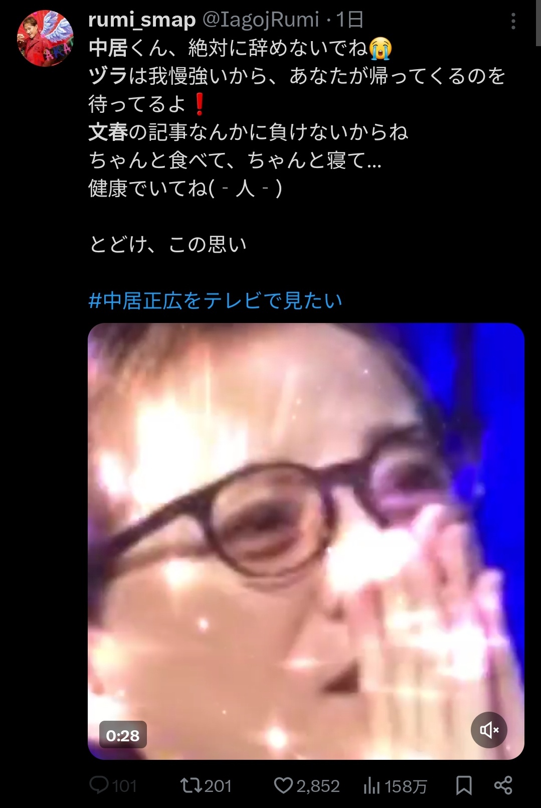 だって中居は和解したやんこれ責めるんは交通事故で賠償終わっても一生車乗るなって言うのと同じやぞ