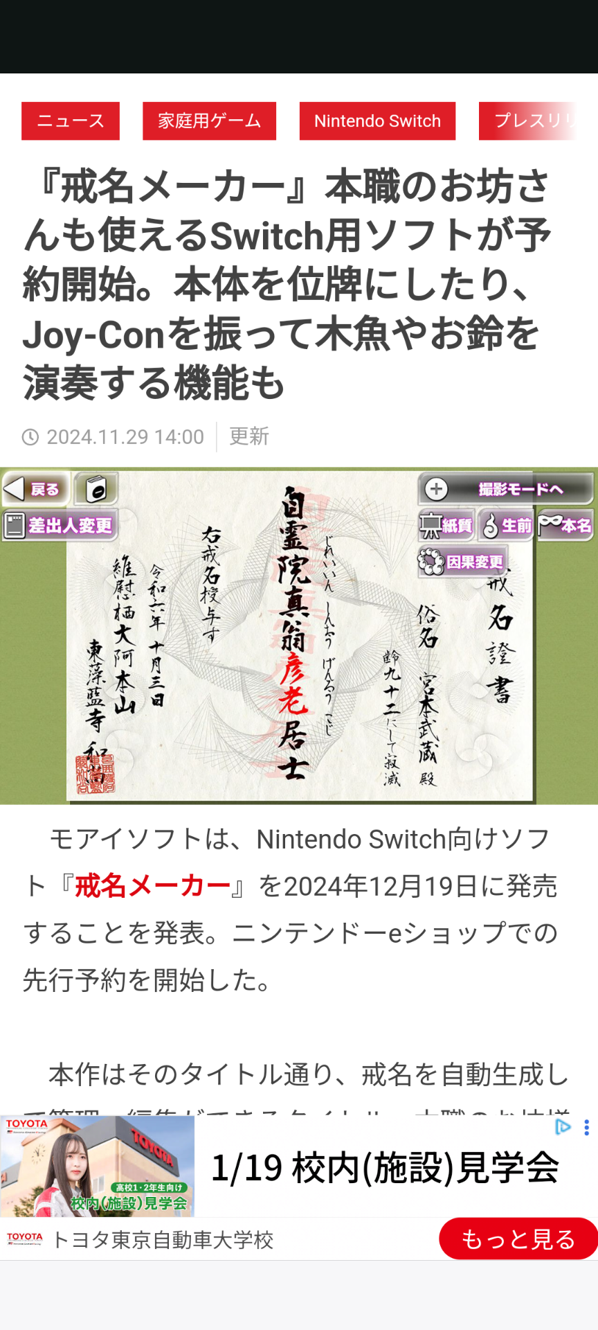 Switchで戒名メーカーみたいの出たやん