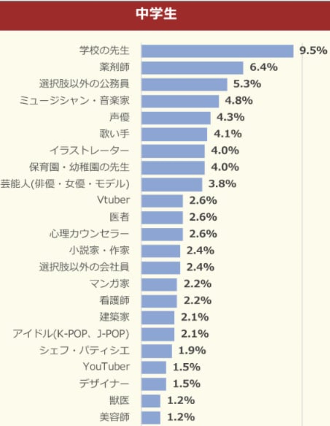 中学生から学校の先生なって上位から消えてるやん