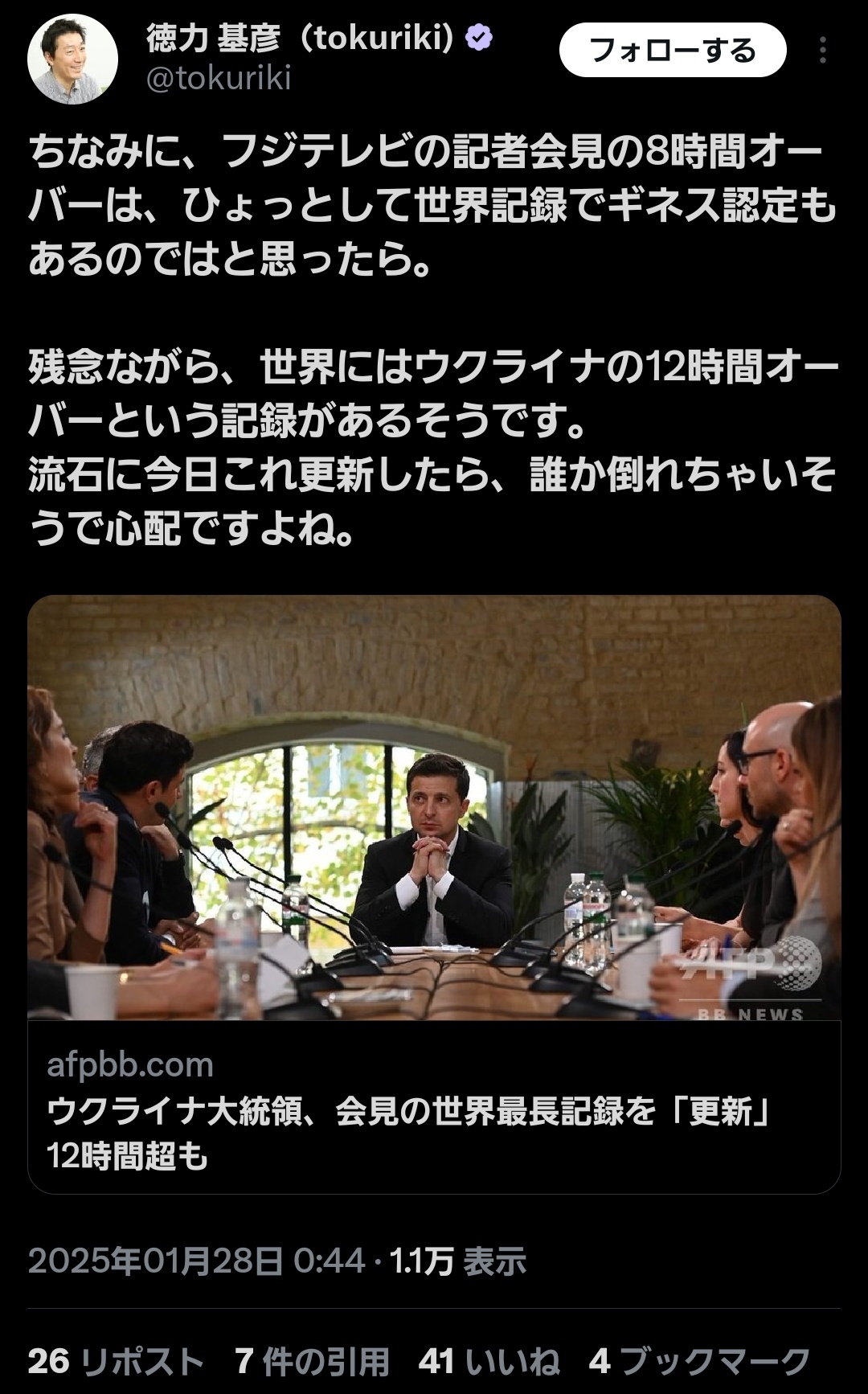 【速報】フジテレビの記者会見が終了した。開始から10時間24分だった https://t.co/ajVOeMfTHk