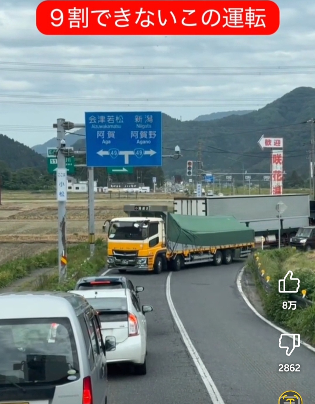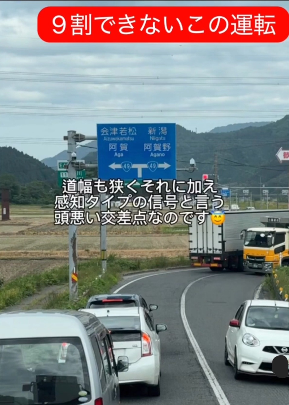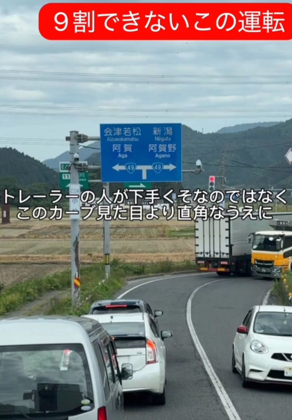 トレーラーが通り抜けられずに交差点詰まってしまって