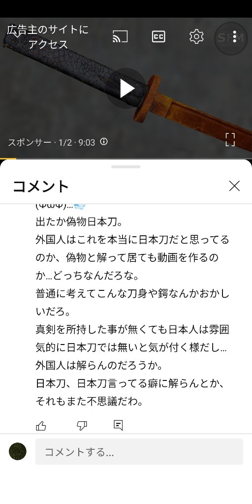 おそらく動画主はアニメ漫画の日輪刀や斬魄刀を作ってみた的なコスプレグッズ製作に近いノリだったんじゃね?