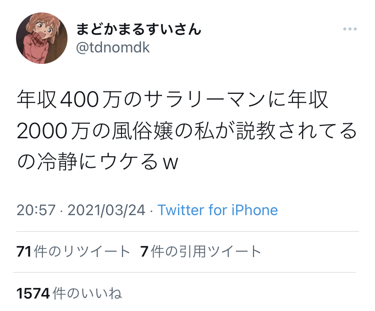 でも相手が客である以上その場で反論できずに後からツイッターでグチグチ言うしかないんだよねえ…w
