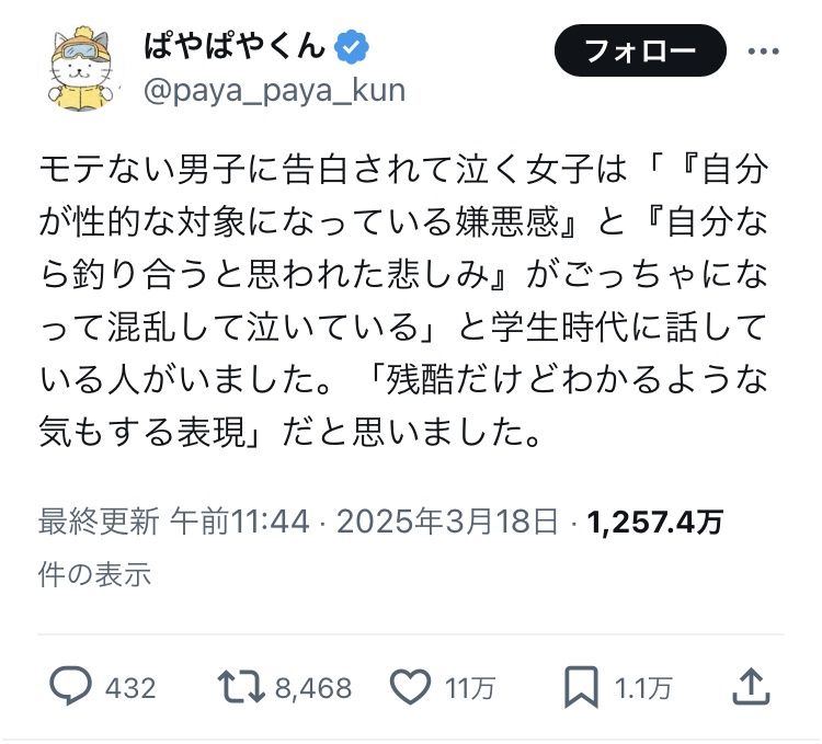 釣り合うと思われたのが悲しいってのも思い上がりがすごいな