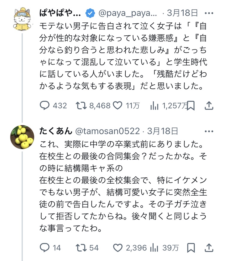 あの子は勇気振り絞って告白したんだなぁって思うわ