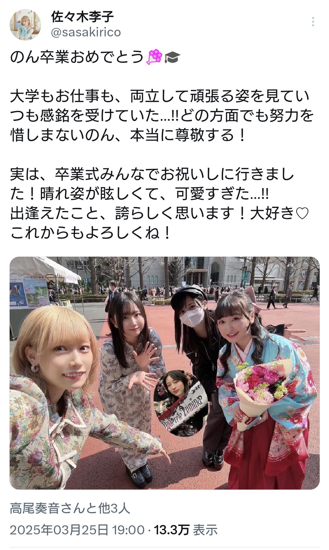 逆にボーカルの佐々木李子さんはアニーの子役からなんやかんやあって今のポジションに辿り着いたな😢
