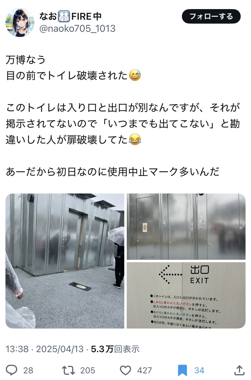 いうて先客がいつまでも出てこないと思ったからって破壊したらアカンやろw