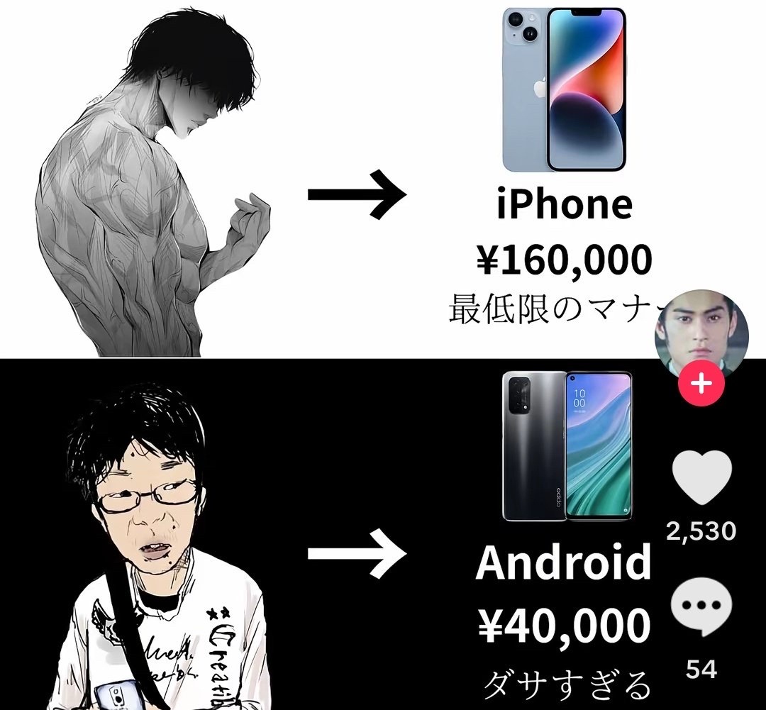 一軍がandroid持とうが、チー牛がiphone持とうが、