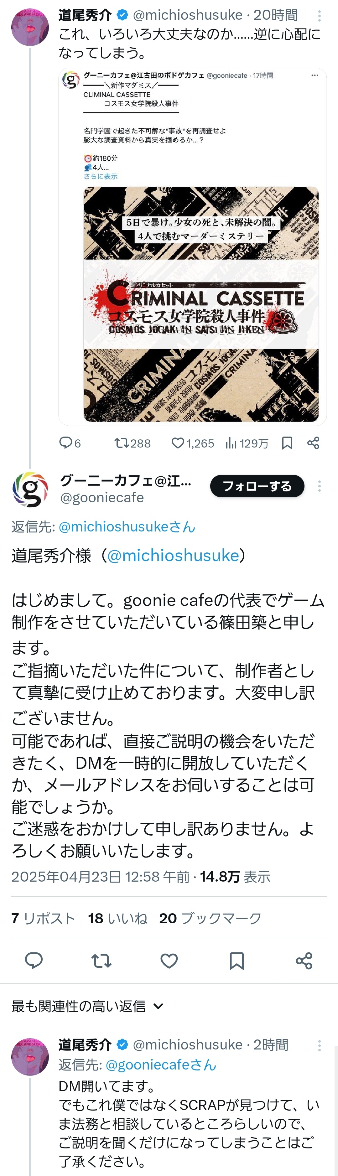 — 道尾秀介 (@michioshusuke) April 23, 2025