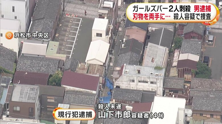 静岡・浜松市のガールズバーで女性の店長と店員が客の男に刃物で刺され死亡し、男は現行犯逮捕された。
