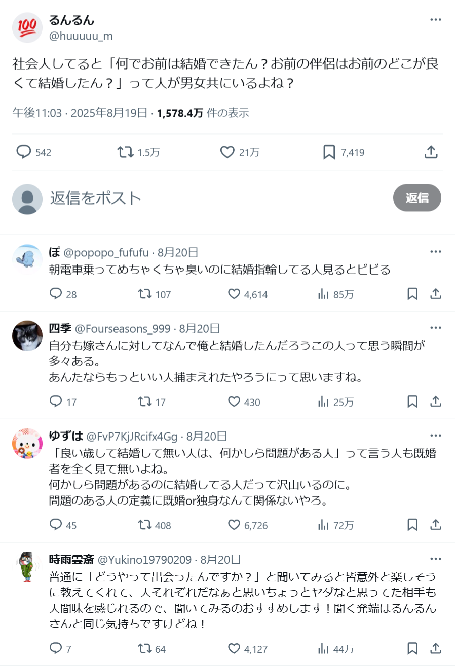 結婚してる=正義って何十年前の価値観やねんっていつも思ってる