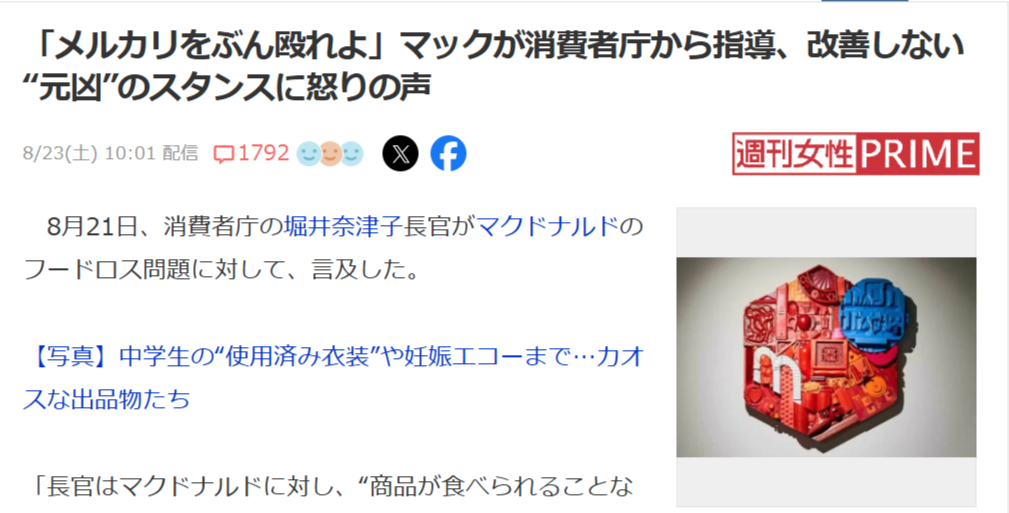 「メルカリをぶん殴れよ」マックが消費者庁から指導、改善しない“元凶”のスタンスに怒りの声