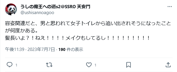 女性スペースに男児連れてくる母親を許さないのに自分は大人の男に間違えられるというモンスター