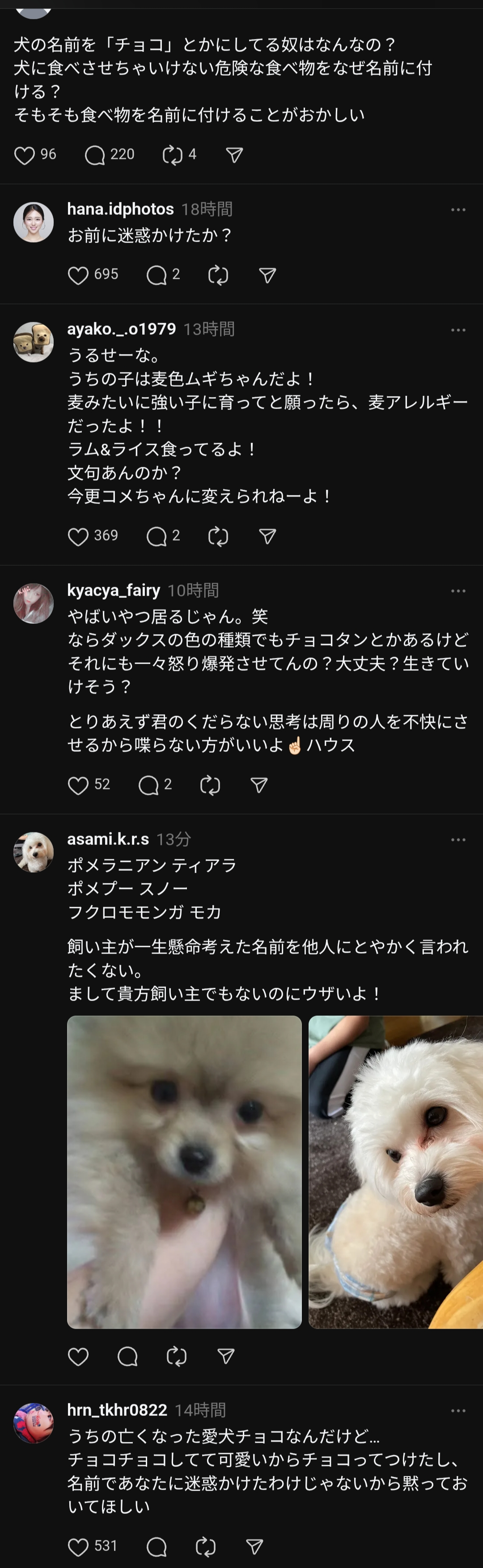 ペットと友達の子供の名前が同じやった時はちょっと気まずかった