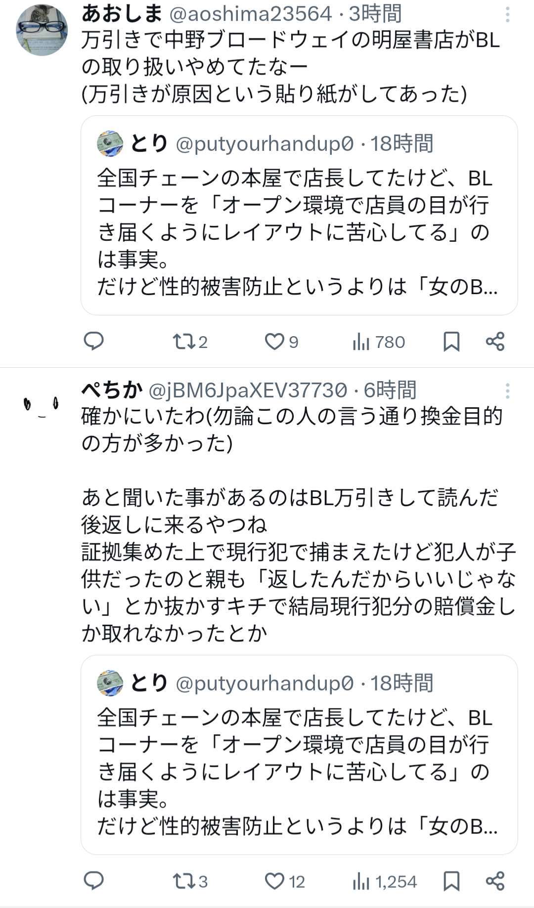 BL本を他のコーナーに持ち出して放置する運動すれば批難の声も高まるんじゃないか?