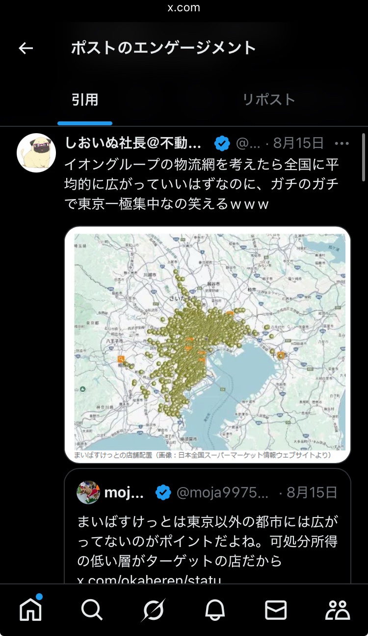 都内スーパーはそもそもセブン勢力強くて次いで他独立系が続いてイオンが一番弱いんや