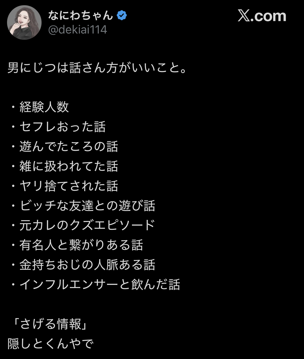 男女逆にすると女に話さない方がいい話になるだけ