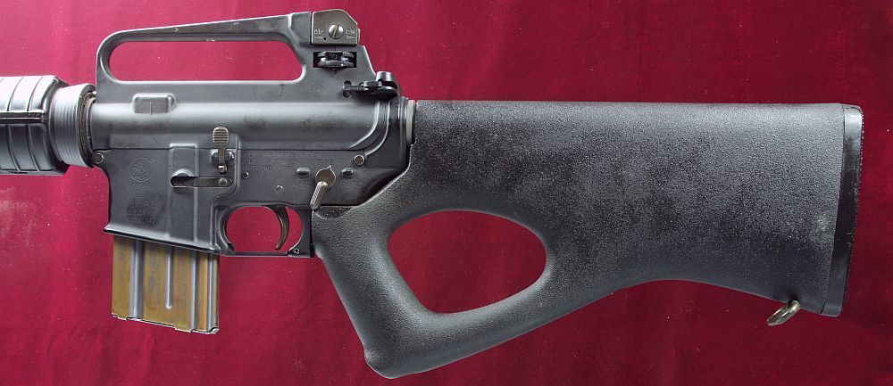 AR15はストックの中にバネが入ってて構造上どうしても後方にバネ入れたストック状のものが飛び出してしまう