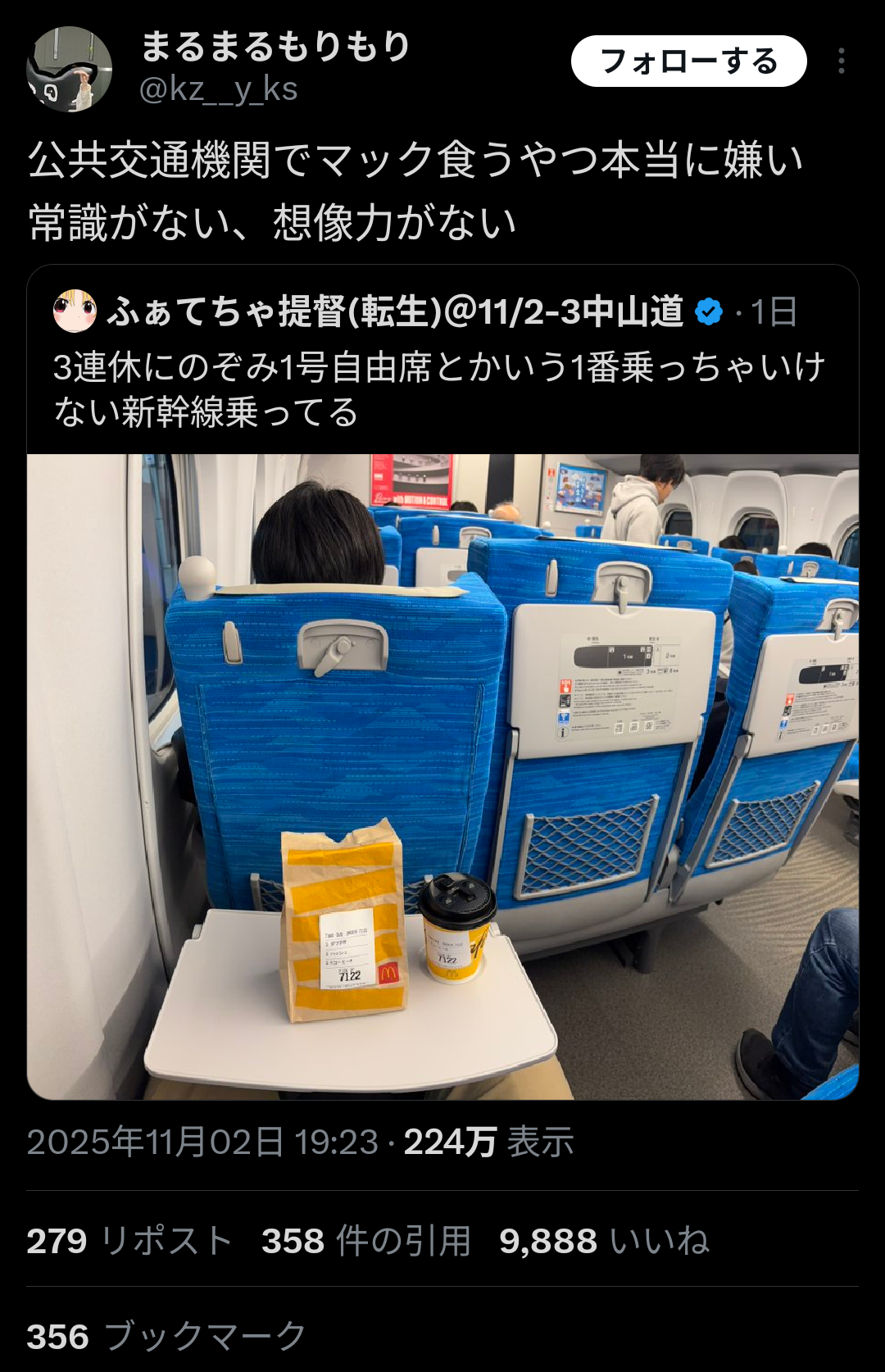 電車内マックがアカンように新幹線内も駄目が普通やろか