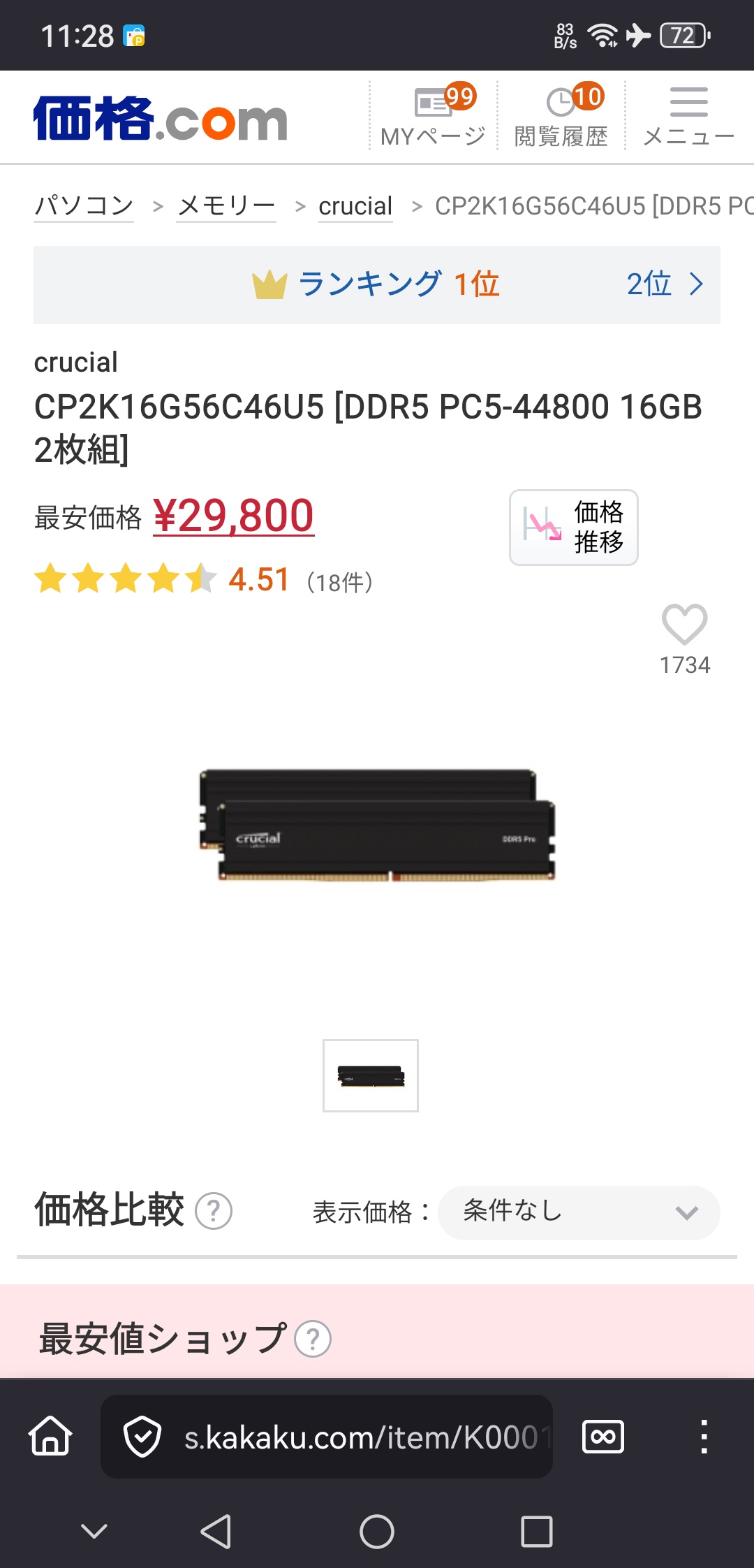 ワイがこないだ買ったメモリ5万も値上がりしてて草