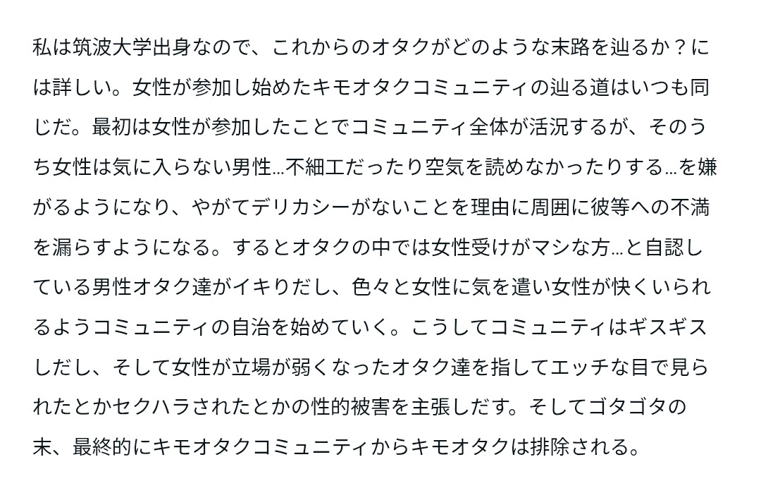 それにオタク達が女に振り回されず治安維持を行わなければ消えるのは女になるはずなんよ