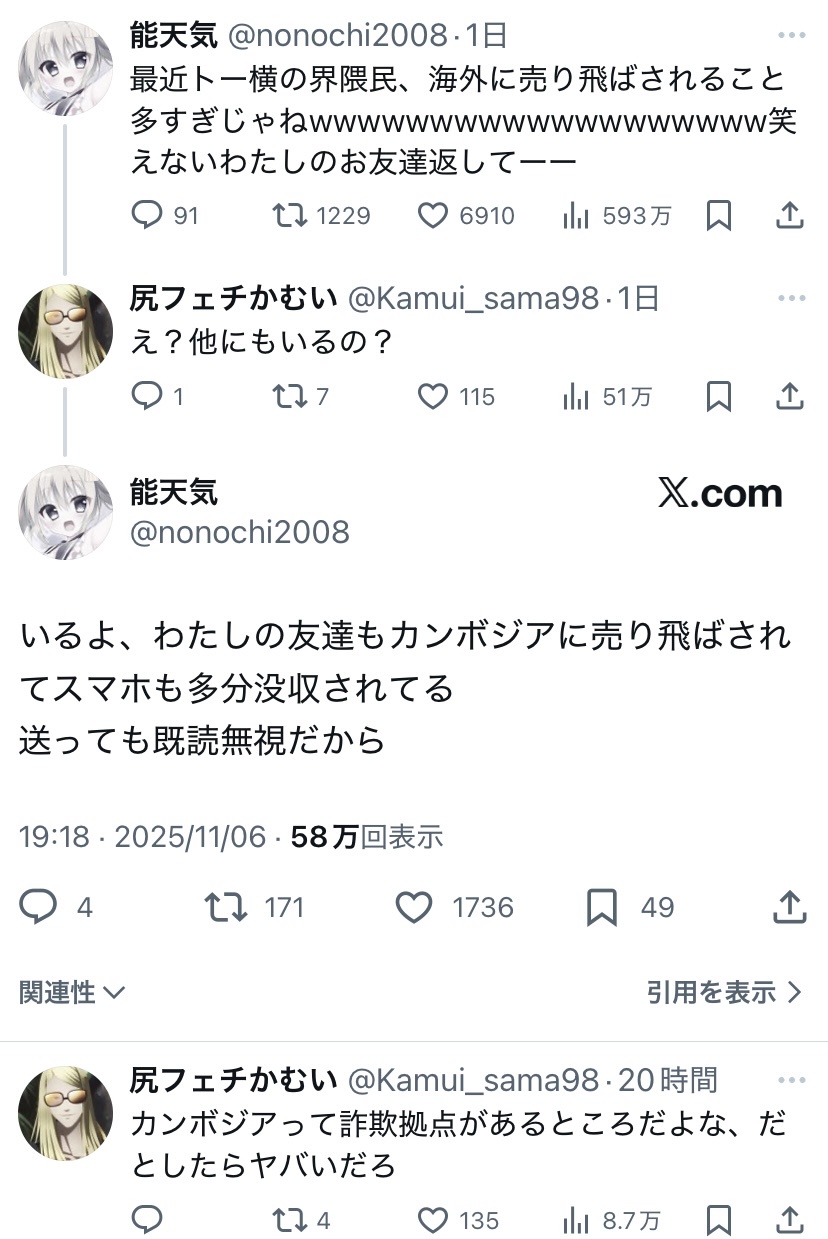 最近トー横の界隈民、海外に売り飛ばされること多すぎじゃねwwwwwwwwwwwwwwwwwww笑えないわたしのお友達返してーー