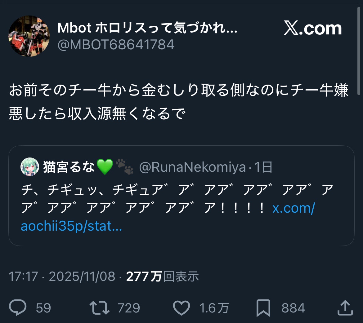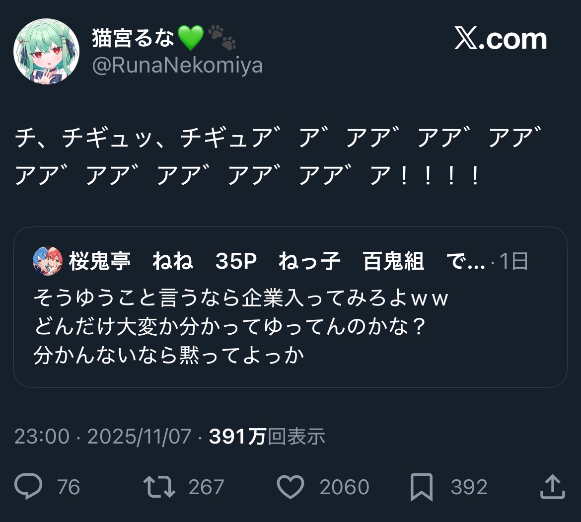 — 猫宮るな💚🐾 (@RunaNekomiya) November 7, 2025