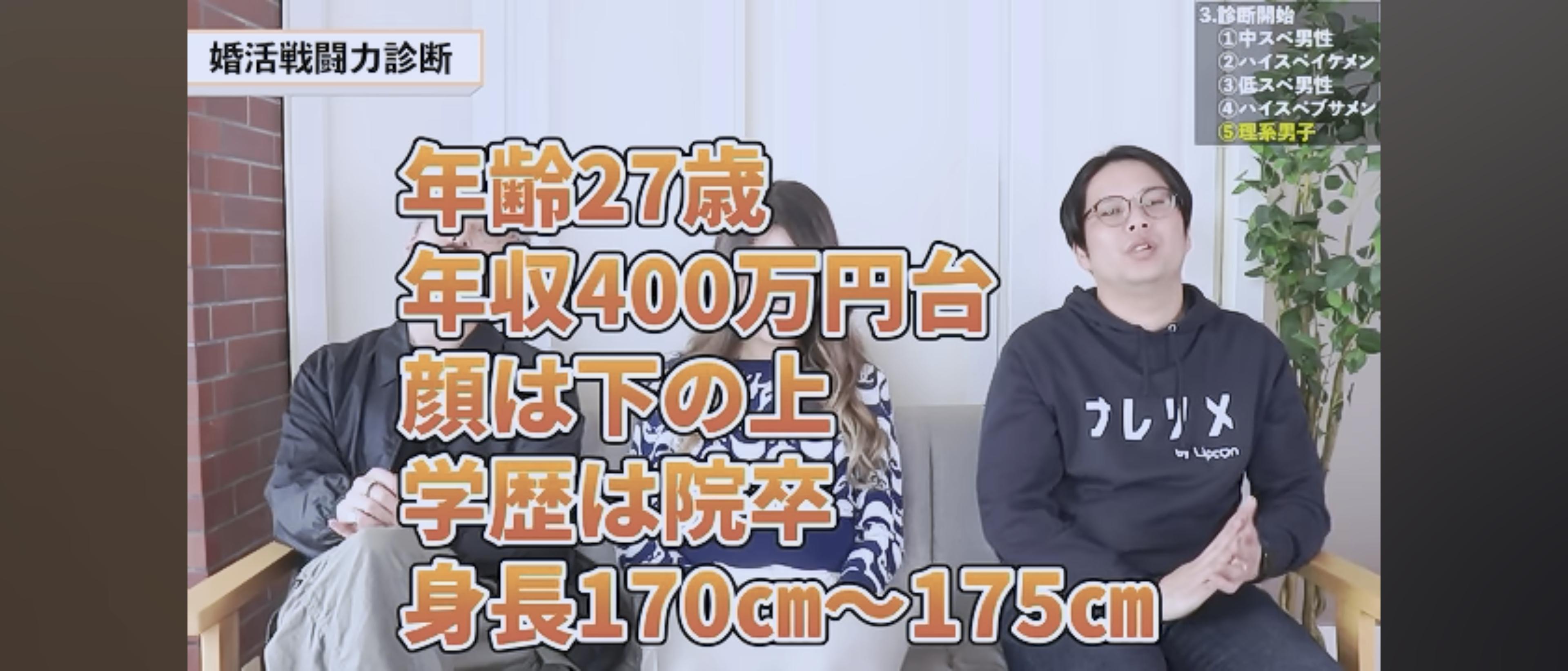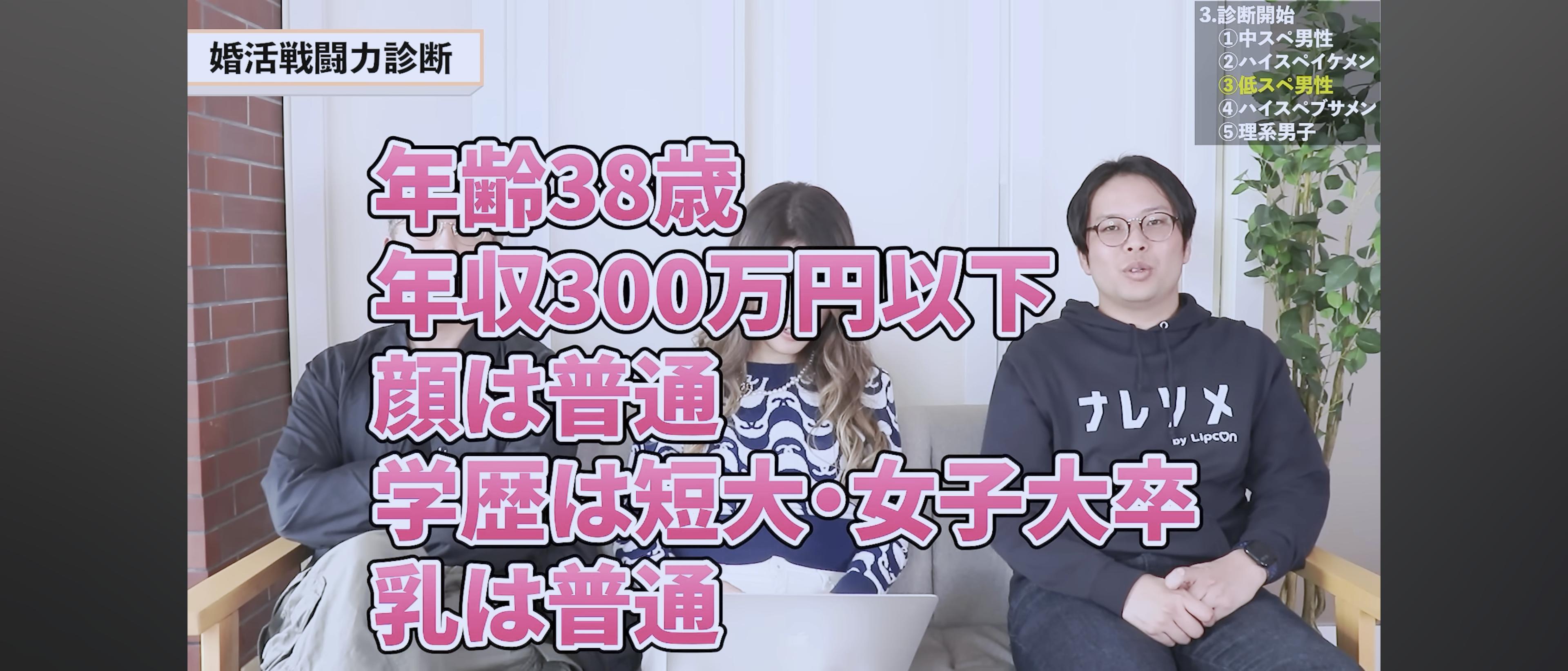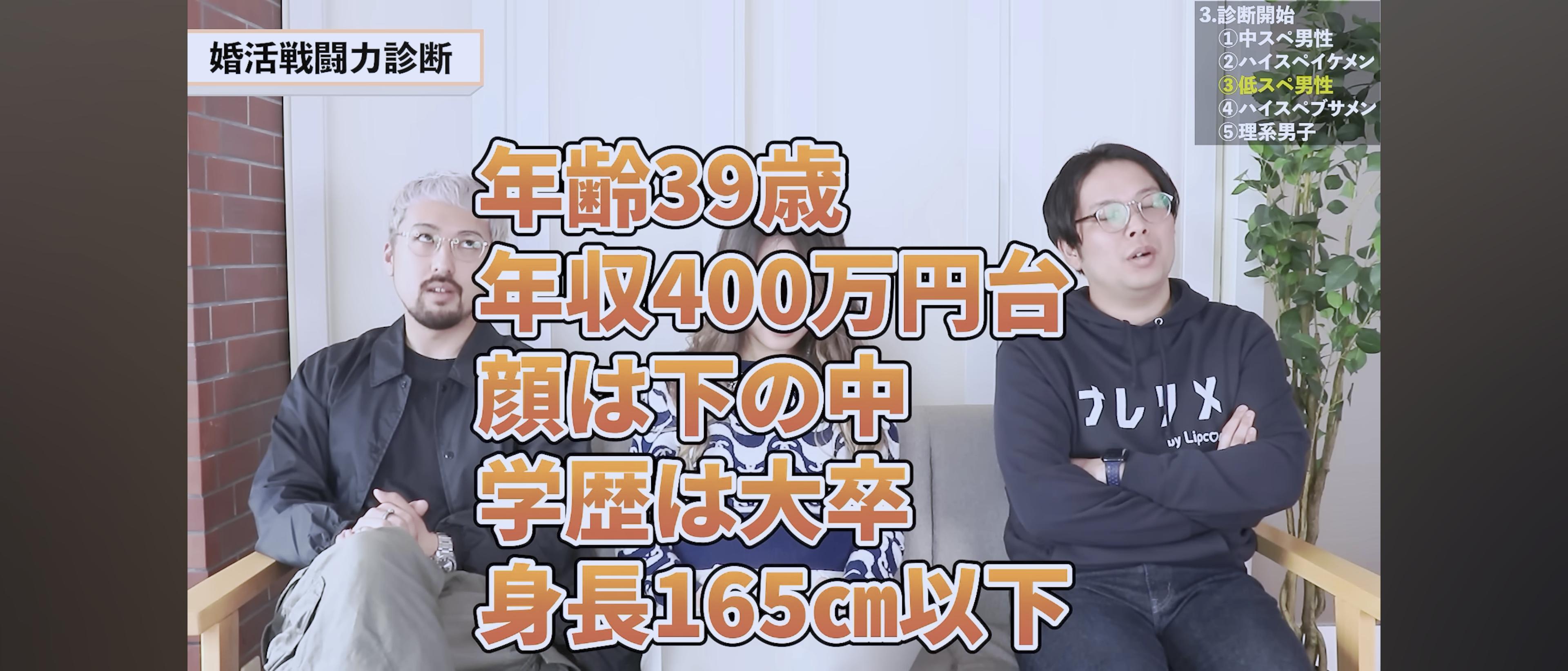 40歳、年収600万↑、163cm、ニッコマ、顔フツメンよりやや下