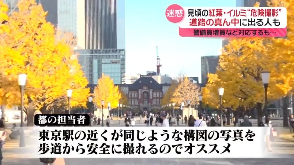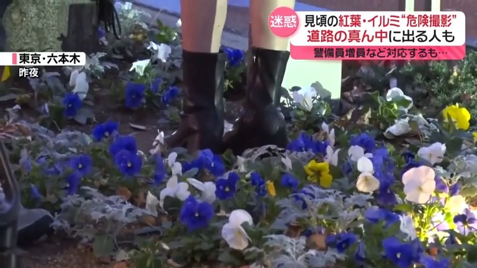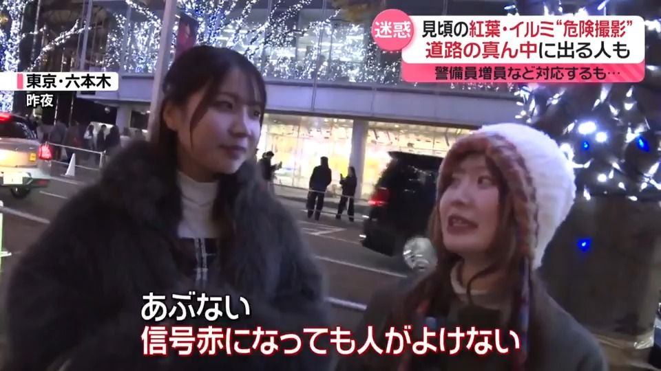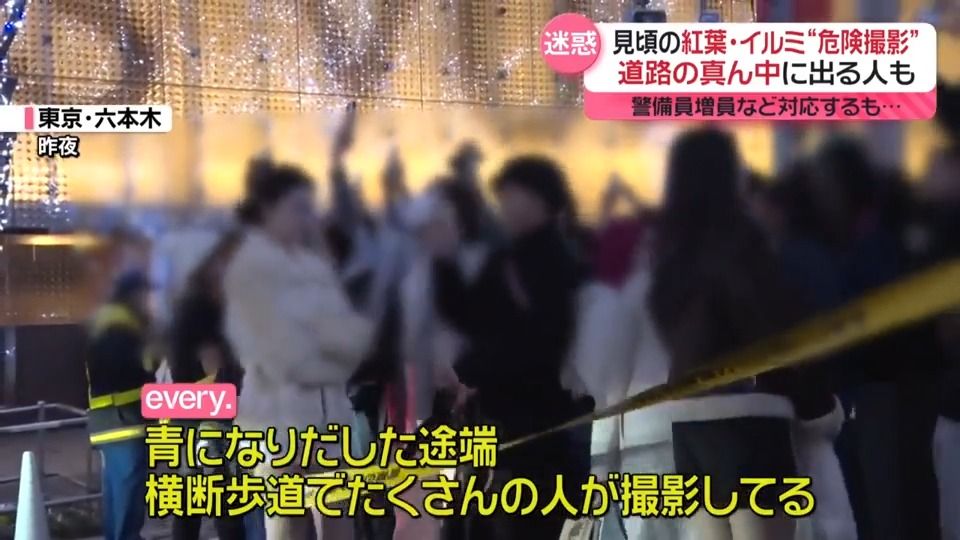 紅葉・イルミの“危険撮影”続出 道路の真ん中で…警備員増員などで対応も