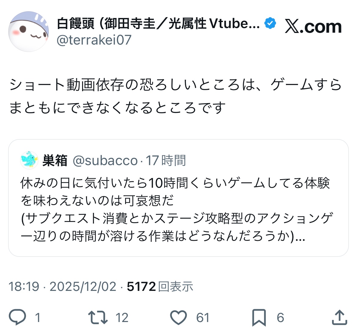 ゲームはSNSに、SNSはショートに取られて何もできない