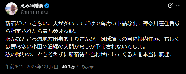 ワイらの新宿がめちゃくちゃ言われてる模様