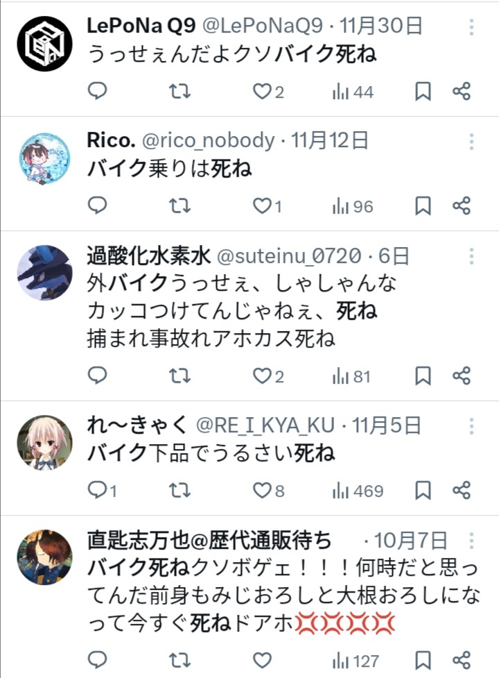 バイクが嫌いなんじゃなくて、てめえが雑魚なだけでしょww