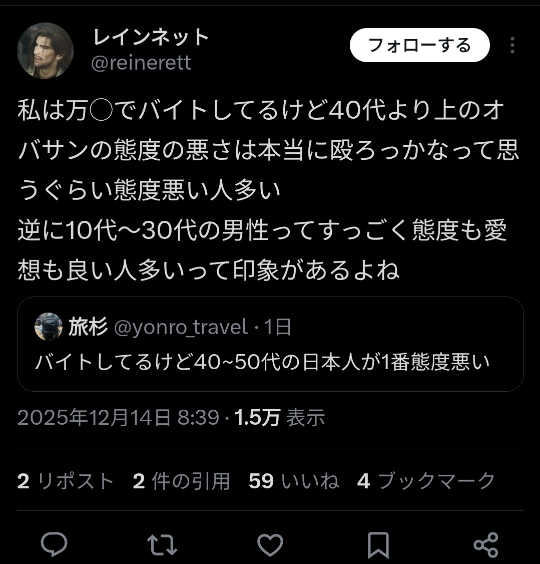 コンビニバイトでも態度がゴミなのは外人より日本のおっさんや