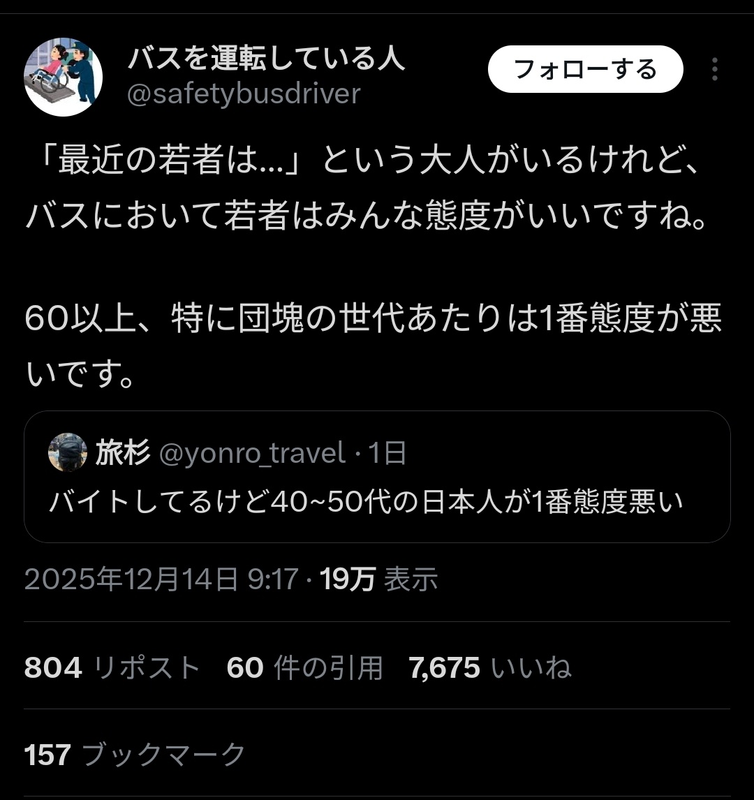通勤で電車に乗ってると日本人全年代態度悪いけどな