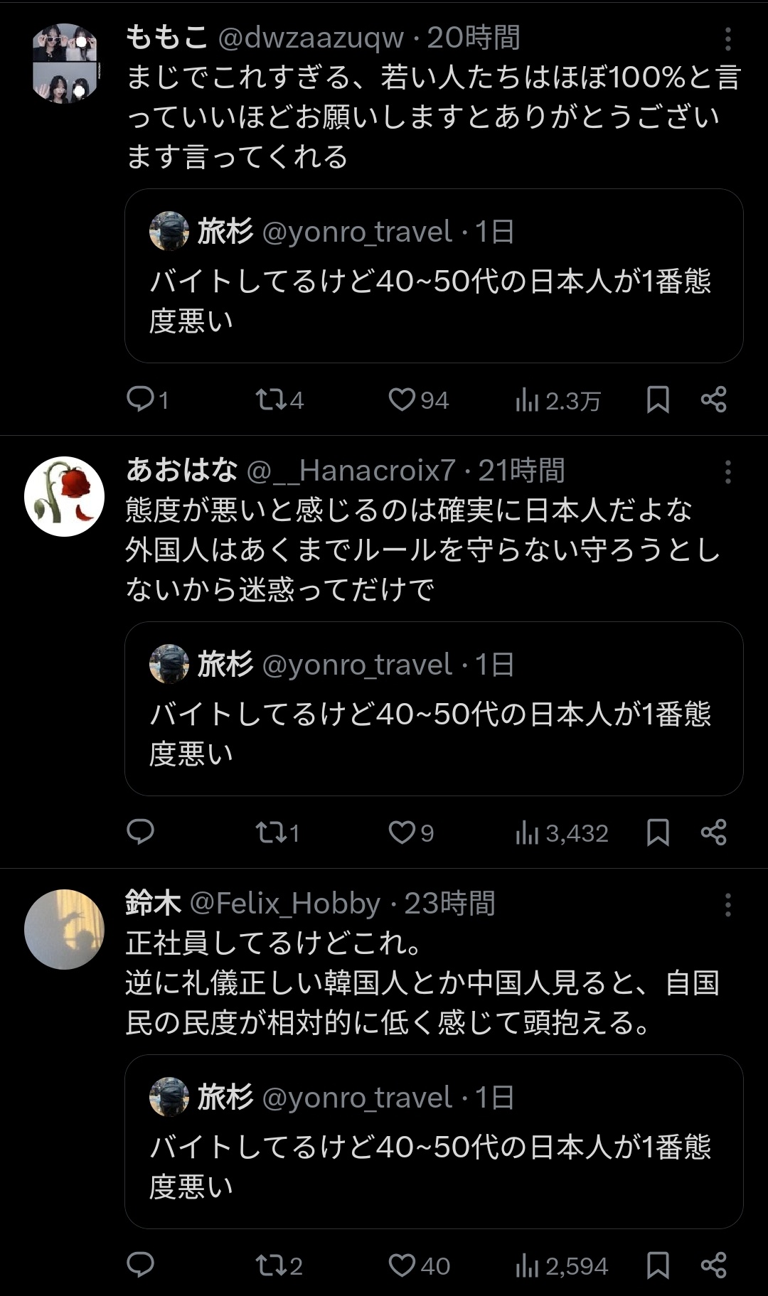 日本のおっさんおばさん客は純粋な性格の悪さが目立つ