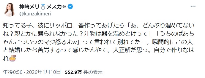 — 神崎メリ💍メス力®︎ (@kanzakimeri) January 10, 2026