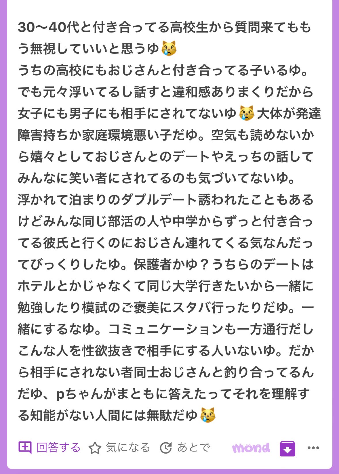 実際は同年代に相手にされないカスで世間知らずの若い子としか同じ目線で語れないクソ男なのにね