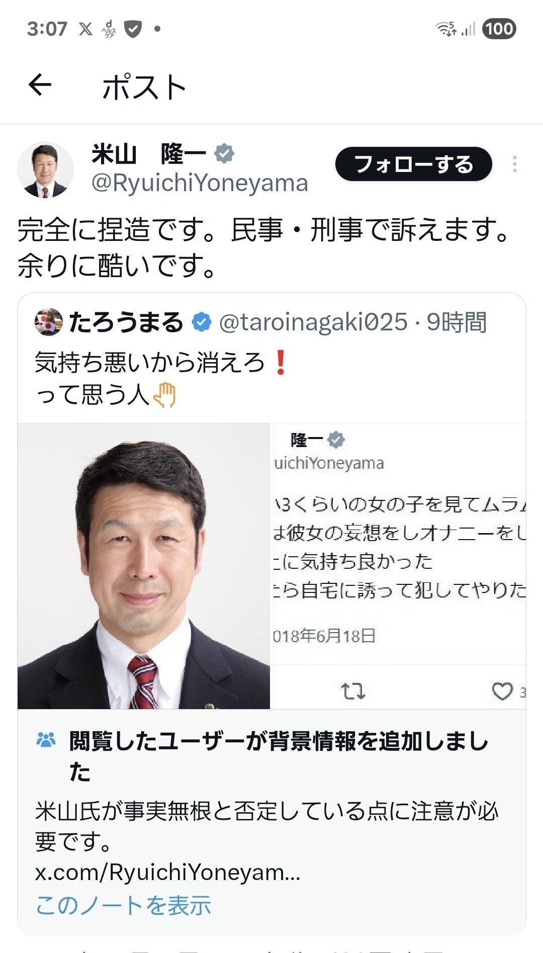 完全に捏造です。民事・刑事で訴えます。余りに酷いです。 https://t.co/X1mlVS5og8