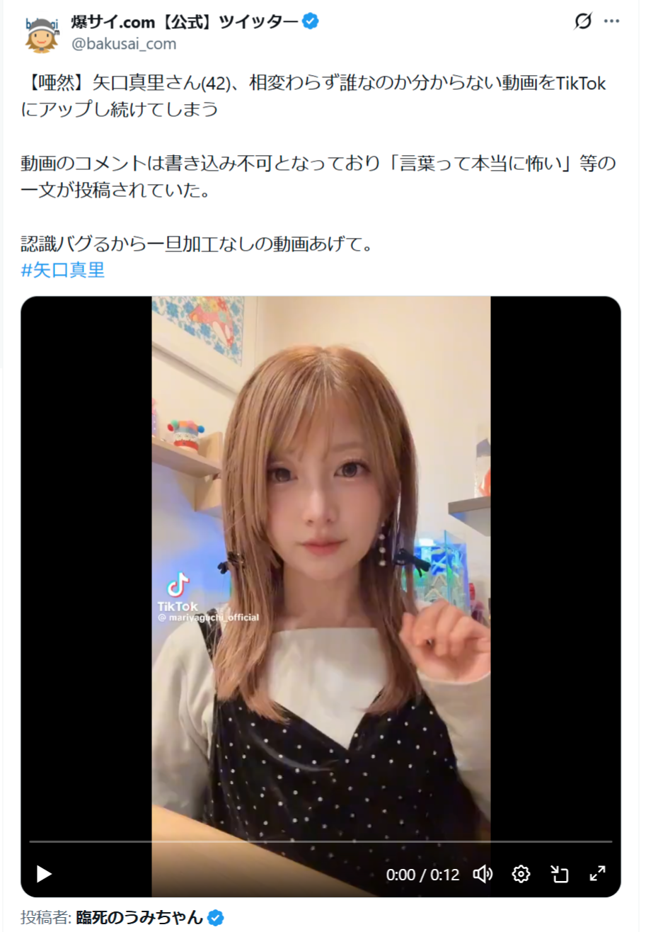【唖然】矢口真里さん(42)、相変わらず誰なのか分からない動画をTikTokにアップし続けてしまう