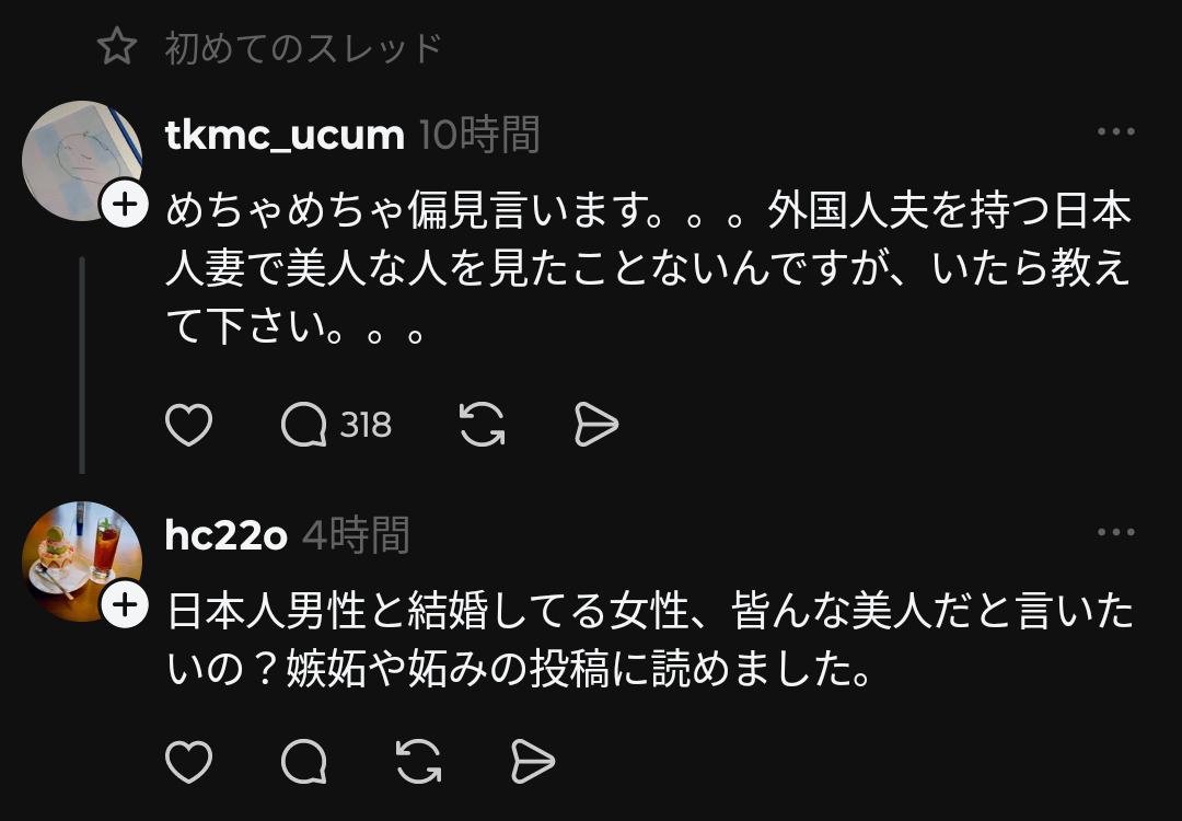日本人女と結婚するのって自国内じゃギークとか下のやつららしいじゃん