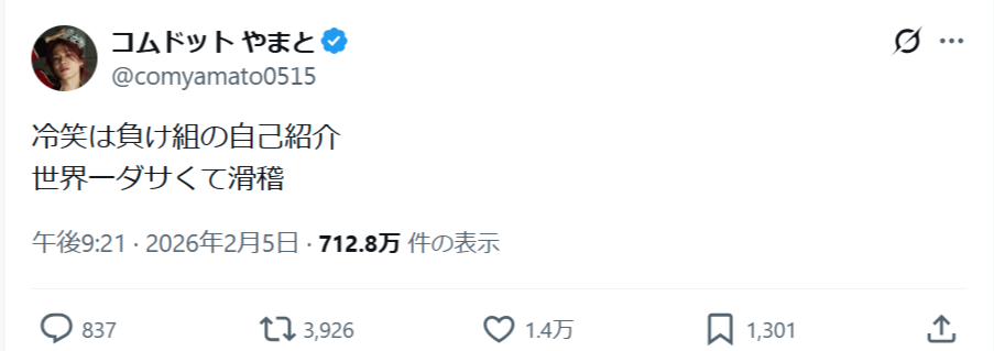 冷笑に対して論理的に反論できず、自分の言われたくない悪口を投げかけて何とかプライドを保とうとする世界一ダサくて滑稽なムーブだな