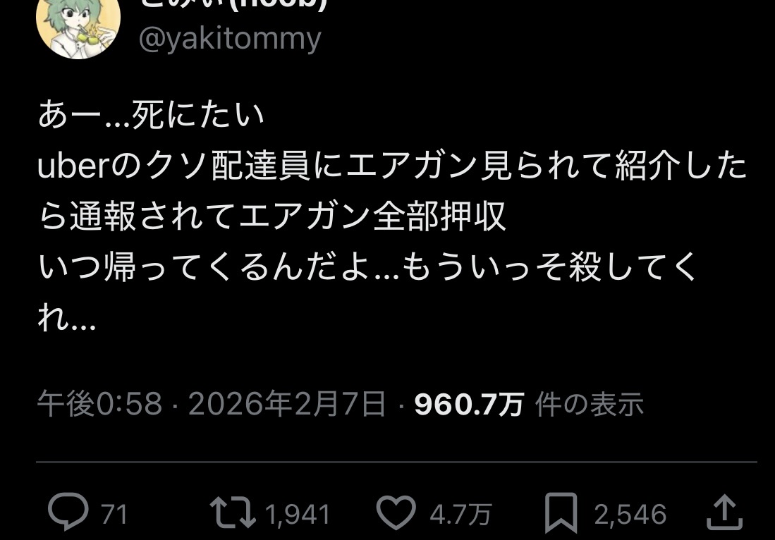 そもそもなんでUber配達員にエアガン自慢しようとしたのか